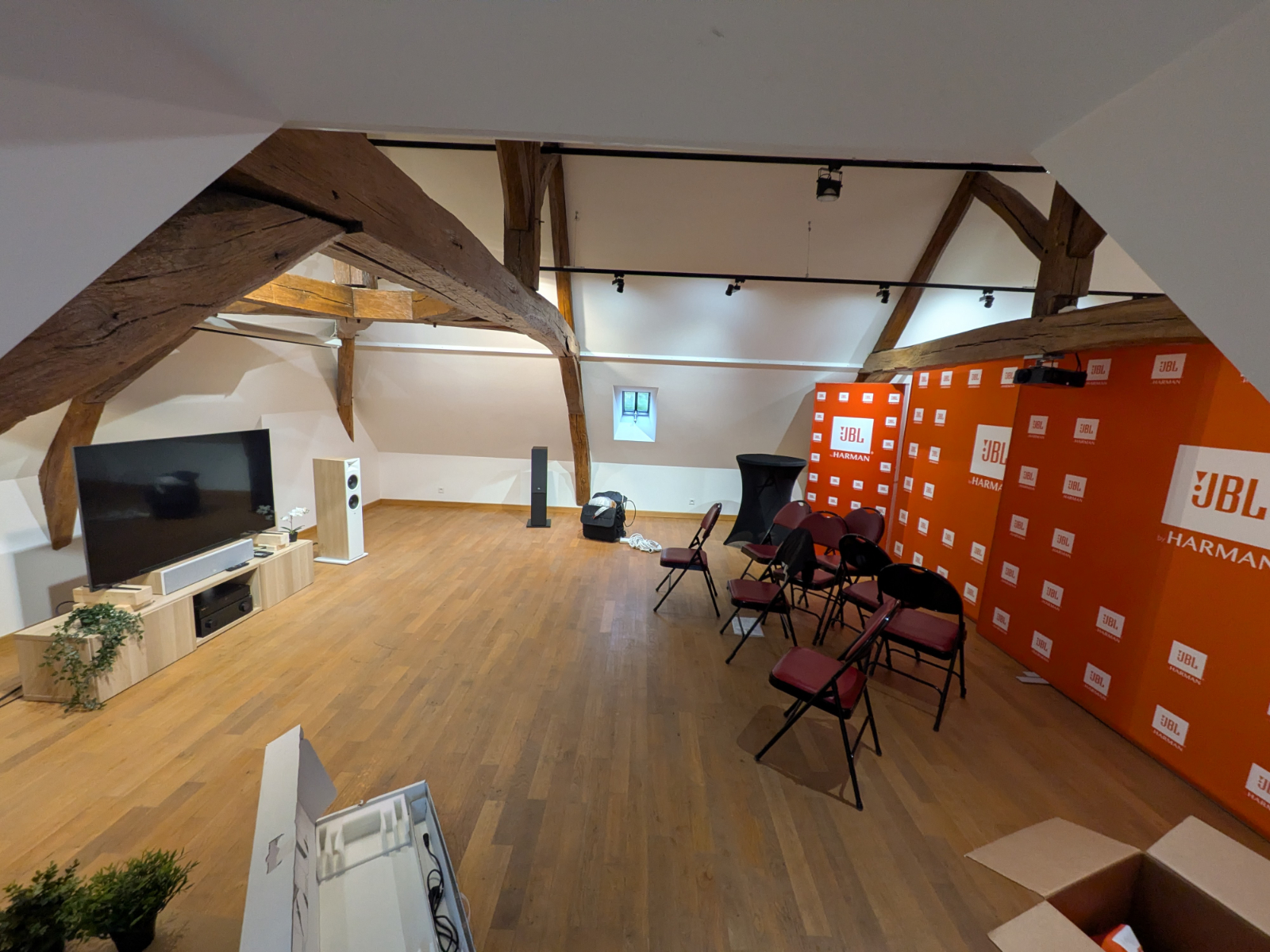 Depuis plusieurs années, HIFI Orléans participe régulièrement aux expositions organisées au Domaine de la Trésorerie par la Galerie Fizz, en y intégrant des objets musicaux design qui flattent à la fois l’œil et les oreilles des amateurs d'art contemporain. Cette année, nous avons décidé de nous impliquer encore un peu plus dans cet événement culturel que nous aimons tant, en y implémentant plus d'appareils, plus variés, plus haut de gamme, et couvrant tout le champ d'expertise d'HIFI Orléans, à savoir, la vraie haute fidélité, les casques audio, et les installations home cinéma. Ainsi, pendant deux jours, au delà des habituelles enceintes connectées et autres systèmes tout-en-un, les visiteurs de l'exposition ont pu profiter de véritables installations audio, mettant en avant des maisons aussi renommées que MOON, Rega, Raidho, Audeze ou encore dCS. Un système home cinéma 5.1 JBL profitait même de son propre espace d'écoute au sein de l'exposition.