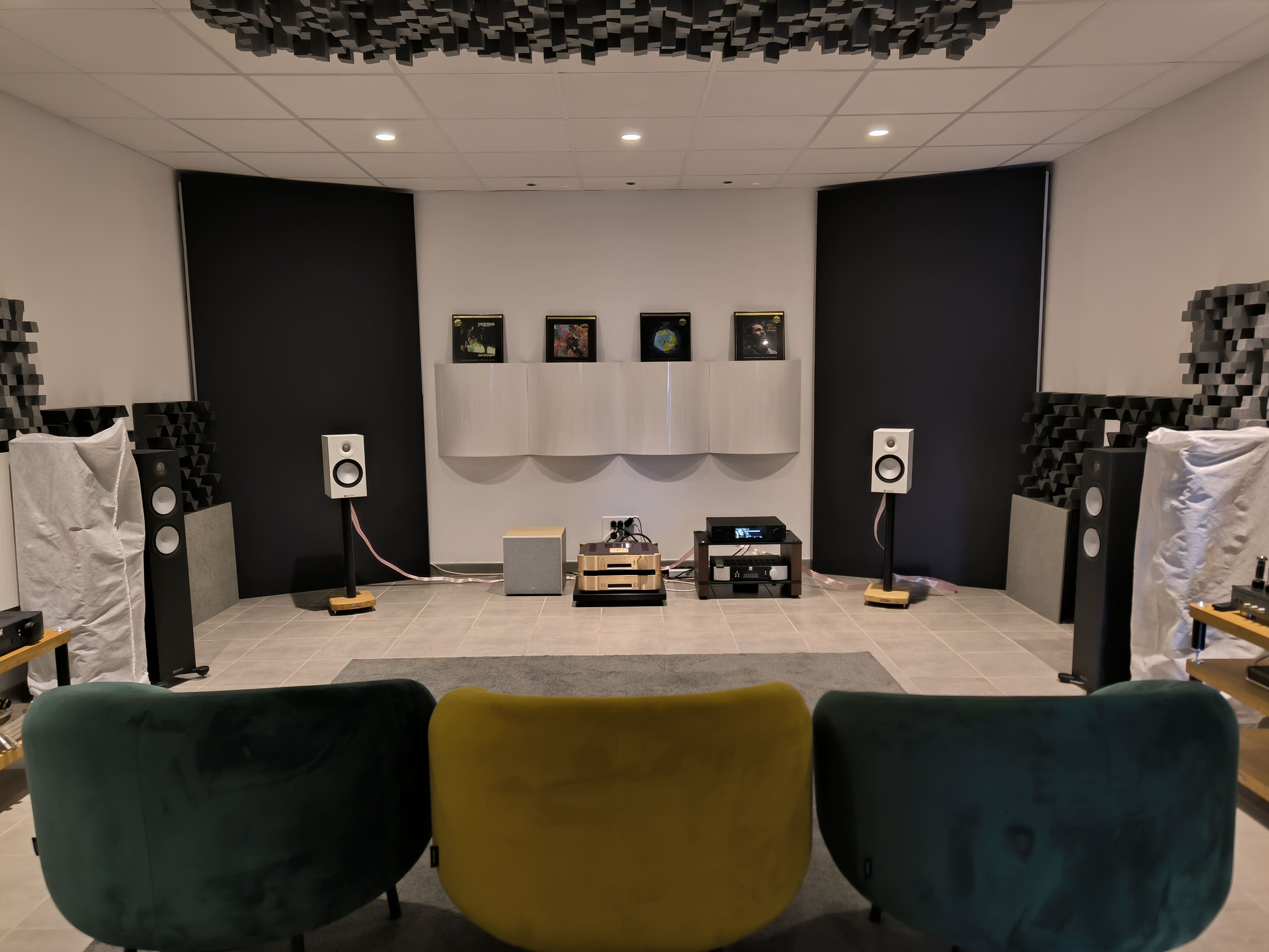 Il y en aurait plusieurs. Il faudrait construire une pièce dédiée en fait. Ce n’est pas qu’une question de matériel, c’est un ensemble, être dans des conditions d’écoute optimales. En fait, il y aurait plusieurs espaces en fonction de mon humeur musicale. Il y aurait une salle de 80/100 mètres carrés j’imagine, avec un style un peu seventies, psychédélique, où on serait assis sur des grandes banquettes, presque à même le sol. On y mettrait des enceintes type grosses JBL, des Everest par exemple, avec des blocs énormes, pour avoir quelque chose qui envahit la pièce et qui fait vraiment voyager. À coté de ça, j’adorerais avoir une seconde pièce typée studio où je pourrais entendre tous les détails de chaque morceau. Ce serait une approche un peu plus « monitoring ». Et puis une dernière salle vouée au cinéma… Ce rêve me couterait très cher ! (Rires)